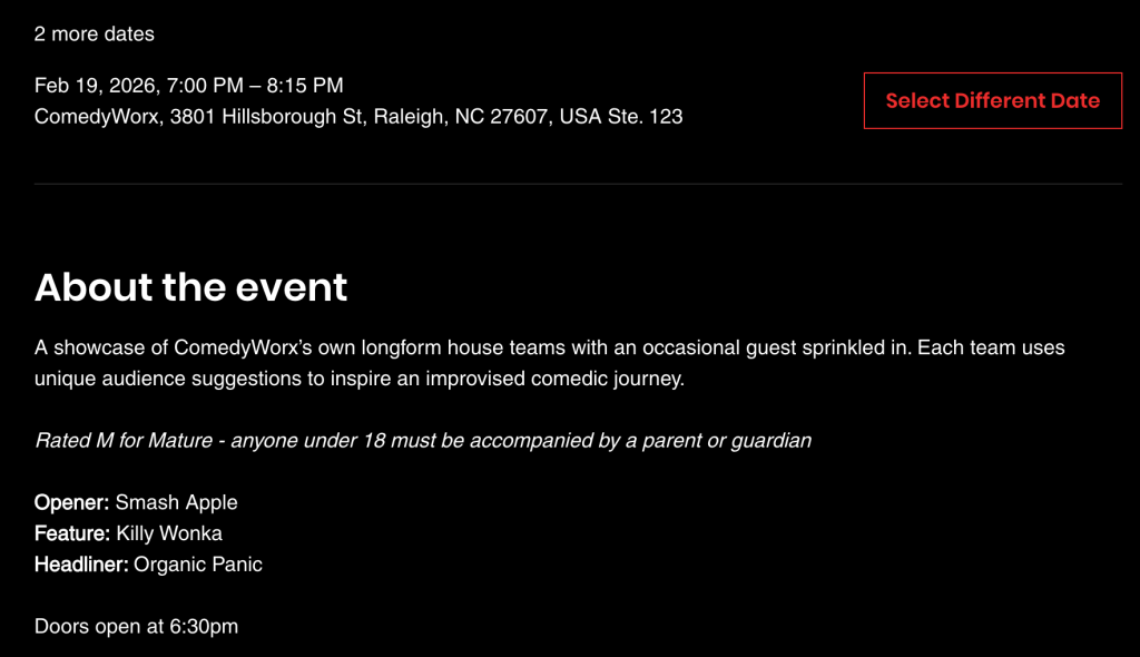 February 28, 2026 from 11:00am – 8:00pm at Theater Raleigh’s Studio! 3027 Barrow Drive, Raleigh NC